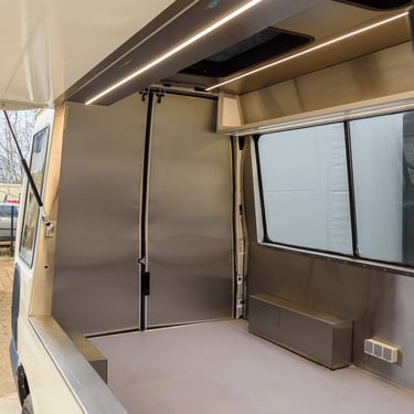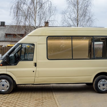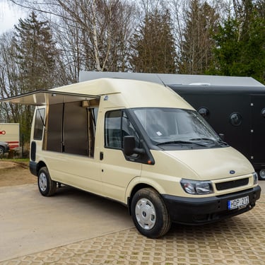 For sale: neat minibus-foodtruck Ford Transit 2002, 2.4L diesel, 66 kw. Minibus documents spec. purpose. Restored, repainted, interior walls covered with stainless steel. Made shelves and e. introduction. Price 7000 EUR + VAT We can also fully equip according to your wishes.